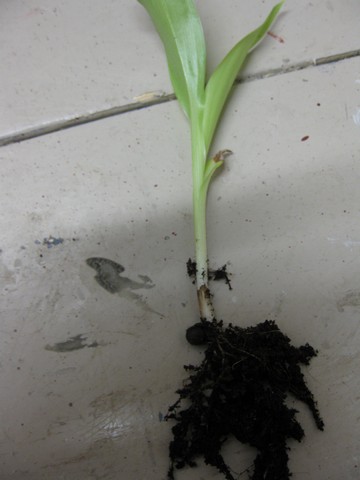 Maar dan de volgende foto zien we een banaan- / canna-achtig plantje waar we net het zaadje niet meer op zien liggen in het zand ???