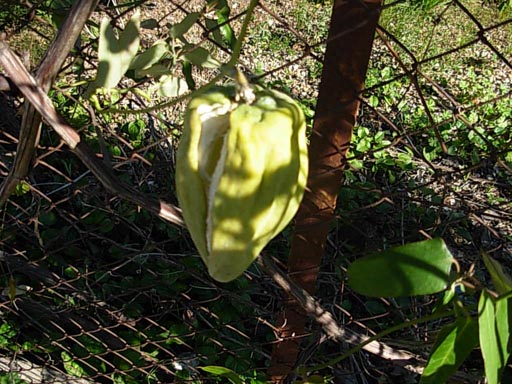 en zaden van een mij onbekende palm (zie foto van de palm en de zaden) en van een klimplant waar wel nog de bladeren en de vruchten aanhingen. De vruchten zijn een vuist groot, waren vanbinnen uitgedroogd maar zaten vol met witte zaden die na twee uur reeds volledig bruin waren verkleurd. Kent er iemand deze palm en de klimmer
