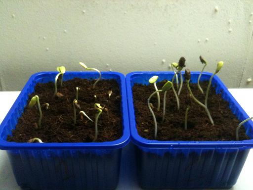 Eergisteren eens een foto genomen van de zaailingen. Had ze nog maar 2dagen gezaaid, dus heel snel komen ze boven piepen.