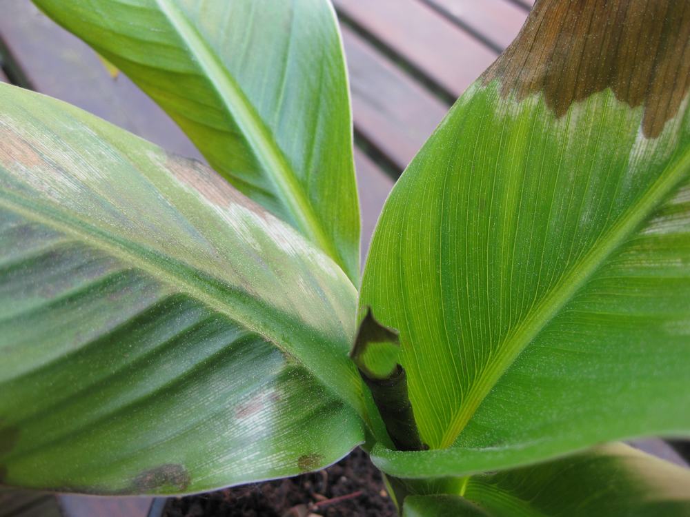 Dacht eerst door de zon maar zelf het nieuwe blad dat nog moet openrollen is al bruin .
