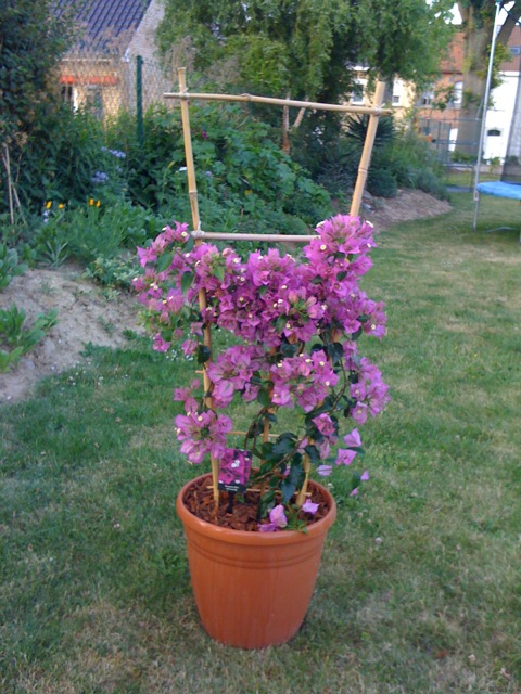 De bougainvillea is ook een van mijn lievelingetjes, diegene die ik overwinterd heb beginnen nu goed uit te lopen, dus is het bij deze helaas lang wachten op de bloei. Intussen al een nieuw exemplaar aangekocht nl de bougainvillea Vera 'deep purple' deze heeft ook een groter blad dan de alexandra. Deze planten brengen gewoon heel de zomer lang kleur in de tuin en voor de prijs moet je het niet laten.