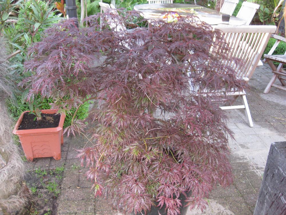 Onderstaande foto is de Acer palmatum "atropurpureum". ;)