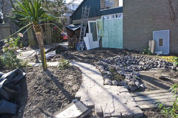 zijkant tuin eind maart 2011 pad aangelegt, verhoogde border.jpg