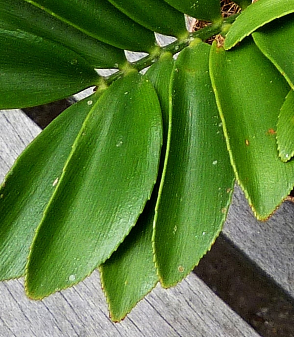 Volgens "Cycads of the World" zijn de zijbladeren van Zamia furfuracea breder dan deze van Zamia integrifolia; de eerste staan ook meer overlappend.