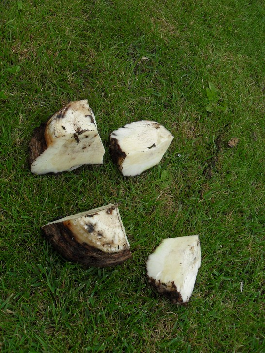 Tijdens de forumuitstap naar de KULeuven vorige vrijdag, kregen we een interessante uitleg van de prof over hoe ensete's kunnen vermeerderd worden. De knol uitgraven en in stukken delen. Dit zou volgens hem ook lukken met de groene ventricosum. Die had ik jammer genoeg niet op overschot, dus heb ik maar een Maurelli opgeofferd voor de wetenschap.