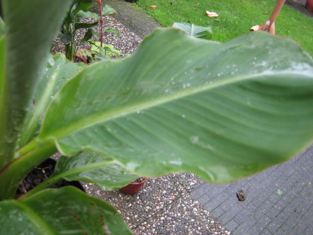 allemaal bedankt voor de reactie`s,maar zelf denk ik ook dat het geen lasiocarpa.is de groei is anders de banaan waar ze nog geen naam aan kan plaken blijft kleiner en de stelen van het blad is ook kleiner.hier zijn de foto`s van de lasiocarpa en de mysterie banaan