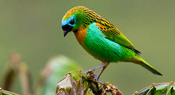 Dit raakt bij mij een gevoelige snaar...Vele jaren heb ik vogels gehouden.En dan vooral soorten uit de groep der vruchten- en insekteneters.Destijds moest ik daar door serieus tijdgebrek (ander werk) mee stoppen.Momenteel is het zo dat door allerlei wettelijke beperkingen deze hobby nagenoeg onbetaalbaar is geworden.Mijn specialisme was vooral de familie der Tangara's.Onderstaande foto toont de Paradijstangara (Tangara chilensis),door velen beschouwd als de mooiste soort,maar er zijn zoveel juweeltjes binnen deze familie,dat daarover best gediscussieerd kan worden...