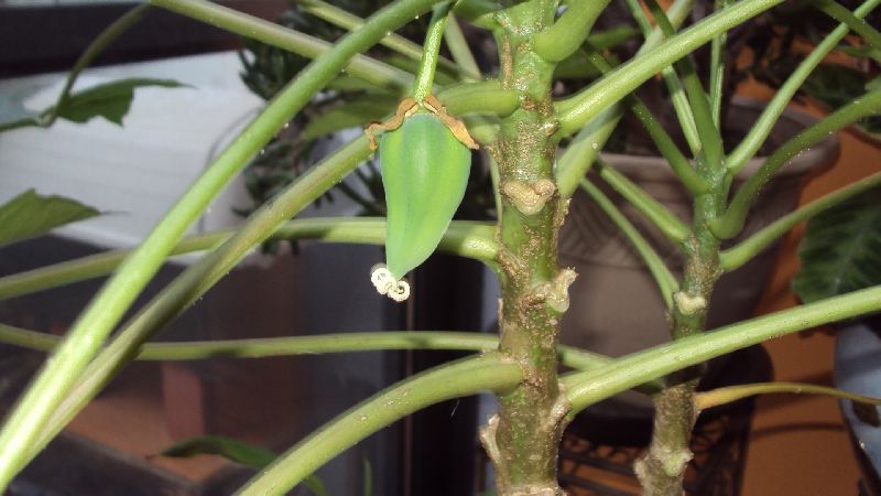 hier enkele foto's van mijn eerste stuk fruit aan mijn papaya boompje
