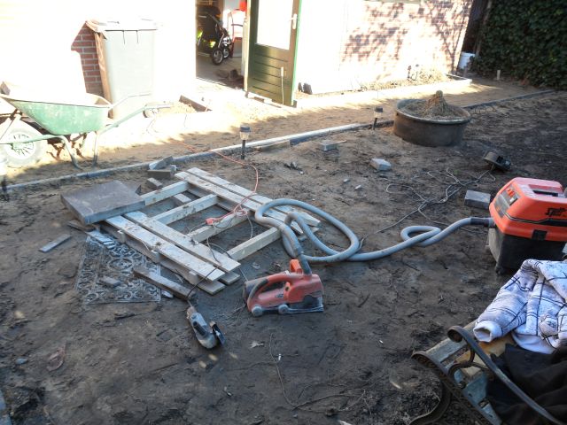 Stenen komen morgen dus kan ik langzaam gaan beginnen met bandjes te stellen en wat de hoogtes gaan vechten.