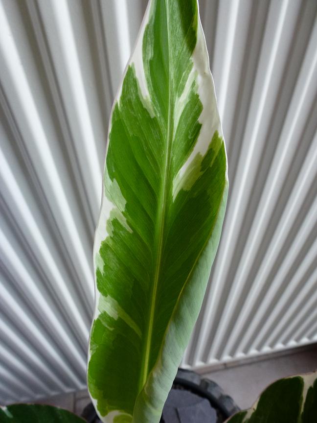 Op de ruilbeurs van Canna Banana ben ik de trotse eigenaar geworden van een bonte Musa. Merkwaardig dat er niet meer interesse voor was want de plant (samen met zijn grotere broer) stonden er al enige tijd alvorens mijn oog er op viel. Volgens de verkoper zou de moederplant zijn meegebracht uit de Philippijnen en zou het om een Musa Icecream variegata gaan. Persoonlijk dacht ik eerder aan de Musa aeae 'Florida' maar ik ben ook geen specialist he. In ieder geval kan ik over de icecream variegata niets terugvinden. Wat denken jullie er van?