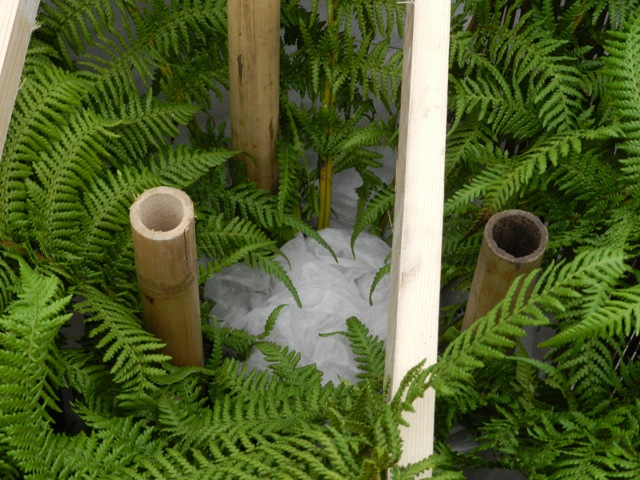 Bij deze mijn inpakkunsten... ingepakt met stro en vliesdoek...