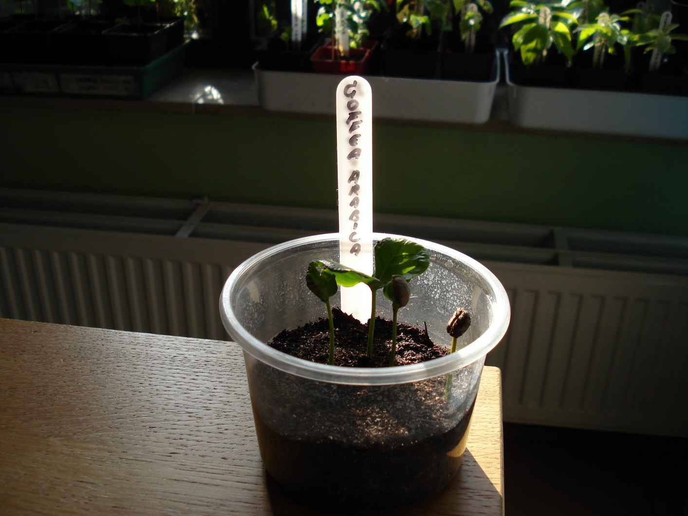 Ik heb vorige zomer geprobeert Coffea te zaaien van zaden afkomstig uit een koffiebranderij. Deze (witte) bonen worden geimporteert en hier in nederland gebrand. Via via heb ik te horen gekregen dat je de zaden kan bestellen en de man heeft mij gratis 5 zaden opgestuurd.
