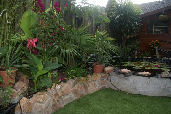 Hierbij nog twee foto's en het ontwerp van de tuin. Ik moet nog de vijverrand