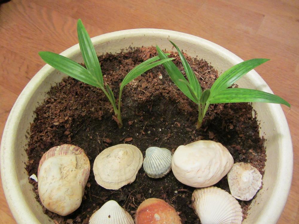 Ook een foto van een palm waarvan ik de zaden ook al had weggegooid maar deze zijn buiten toch begonnen.