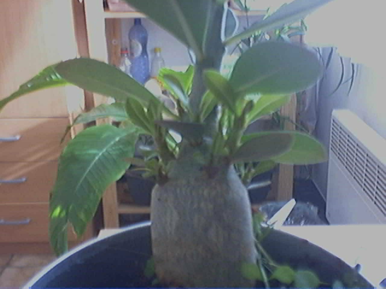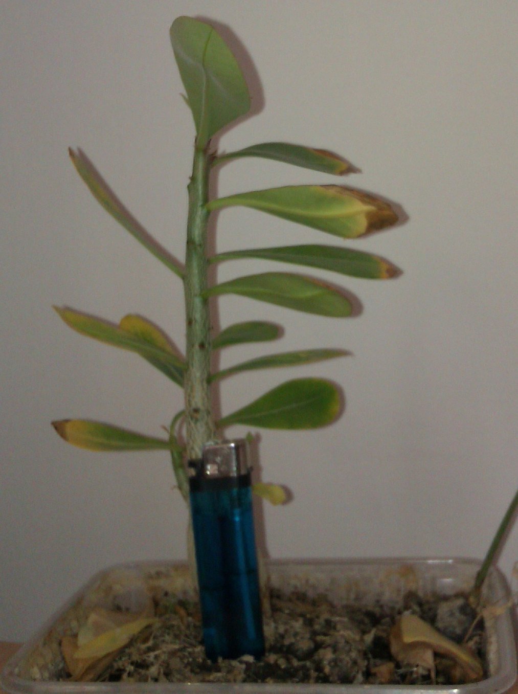 Bij deze een update over de eerste Adenium. Had opnieuw de top er volledig afgedaan. Dus geen groeipunt meer vanboven. Zo zouden er meer zijtakken moeten komen in de lente. We zullen zien.