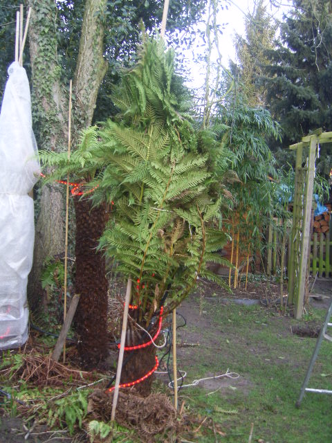 vandaag de bescherming aan de boomvarens aangebracht,straks ga ik naar een bos bladeren