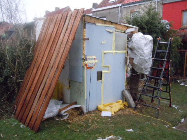 mijn serre uit piepschuimplaten e.d. voor het overwinteren van bananen enz