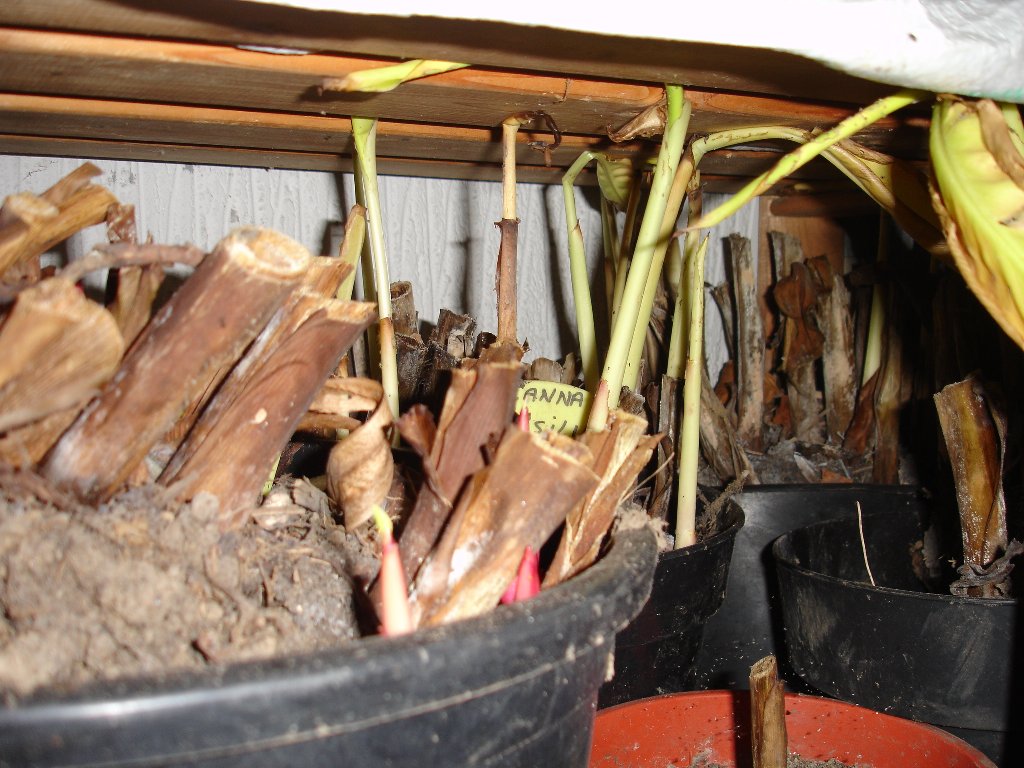 de bananen moet ik nu voor de 3e keer een stuk inkorten,die blijven maar groeien,ze zijn enkel stil gevallen tijdens de 2 weken strenge vorst toen was het in de garage 6 graden