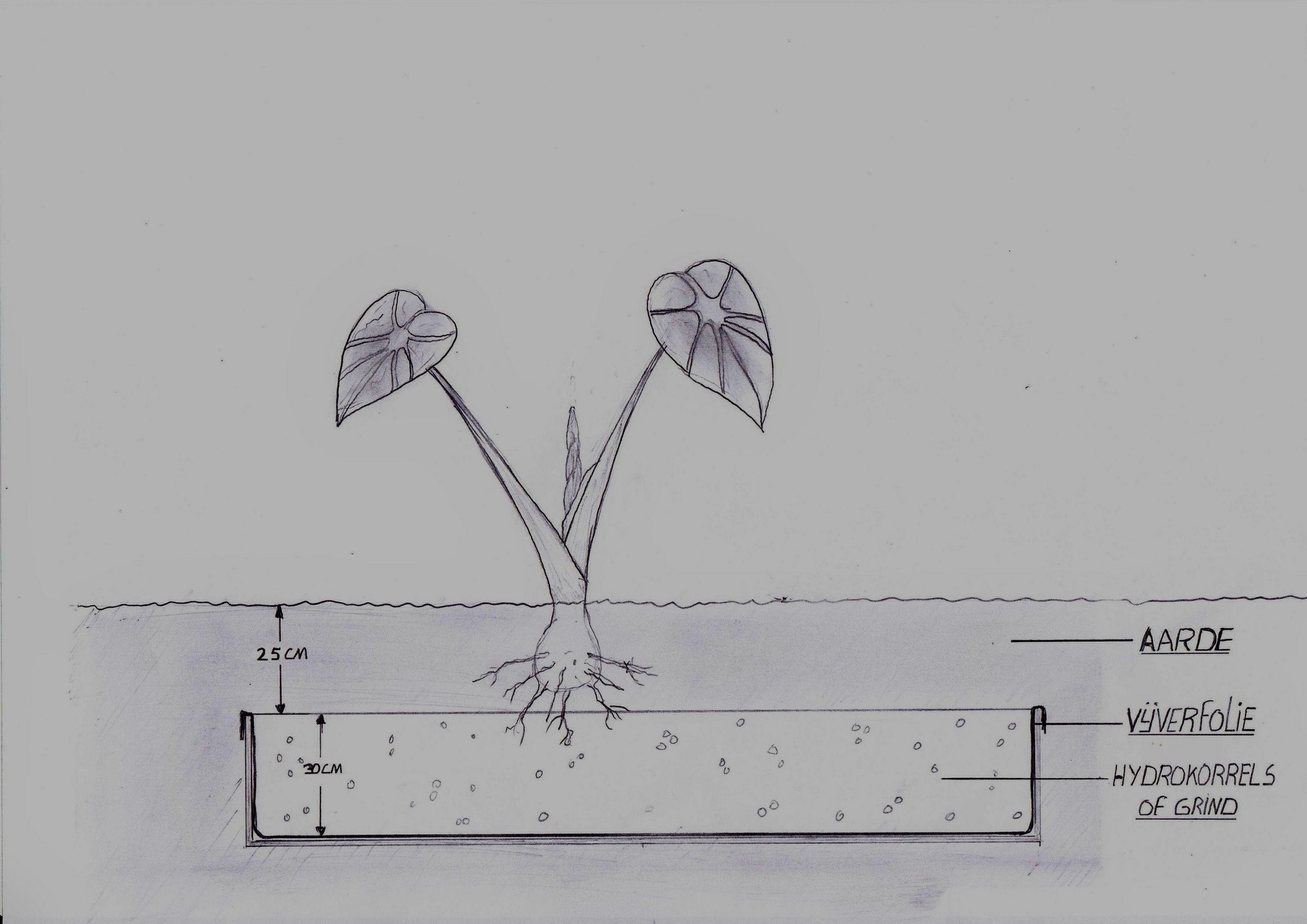 en colocasia's ik heb een schetsje gemaakt van hoe ik dat in gedachten had zijn er