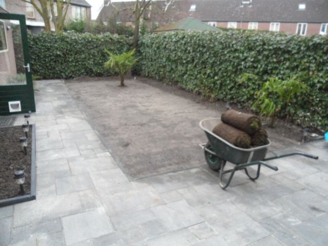 Het weekend daarop heb ik samen met mijn broer grasmatten gelegd dit omdat je gelijk resultaat hebt en in mijn tuintje kost het echt niet veel.