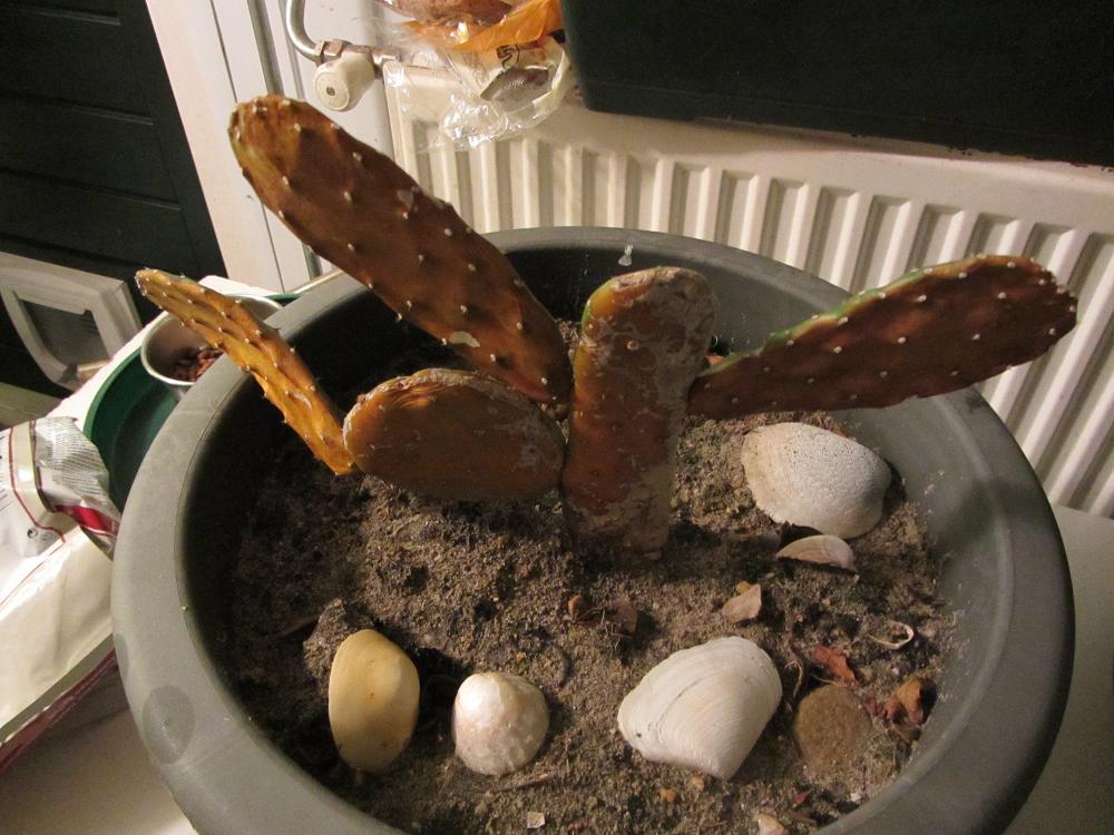 Meestal als ik mijn opuntia laat ik ze rustig wennen aan een lagere temperatuur door eerst de planten in een koele kamer te zetten. Vervolgens in de garage en na 24 uur naar een plekje in de schaduw. Als dat na een weekje goed is gegaan mag je beginnen met langzaam laten wennen aan de zon. Eerst 5 minuten en bouw dit op door elke keer 5 of 10 minuten er bij op te tellen. Op een gegeven moment is een half uur ook als dat goed is kan je hem laten staan.