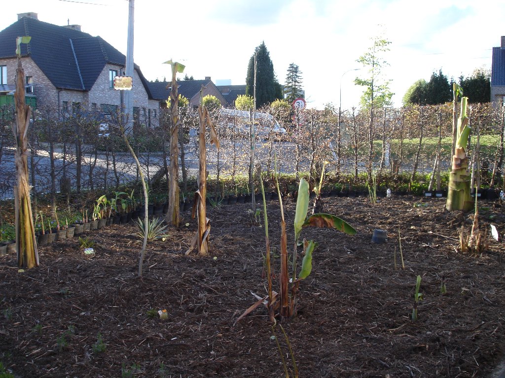 ik heb nog een paar fotootjes genomen vandaag en dan toch begonnen met de bananen in volle grond te zetten.