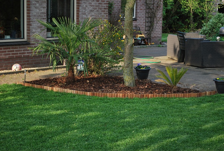 Heb nu nog 4 palmen over maar ben er nog niet over uit waar ik ze ga planten, ik denk de grote ook ergens in het open gras met een bordertje erom heen en 3 de kleintjes weet ik nog niet, in de perkjes word te vol denk ik.