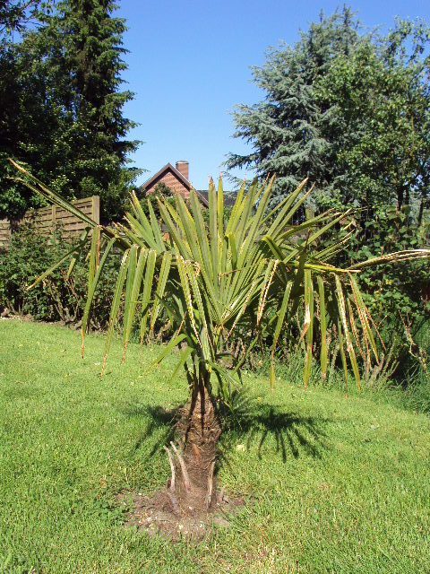 Sinds de zomer van 2010 heb ik twee Trachycarpus Fortunei in het gazon aangeplant.