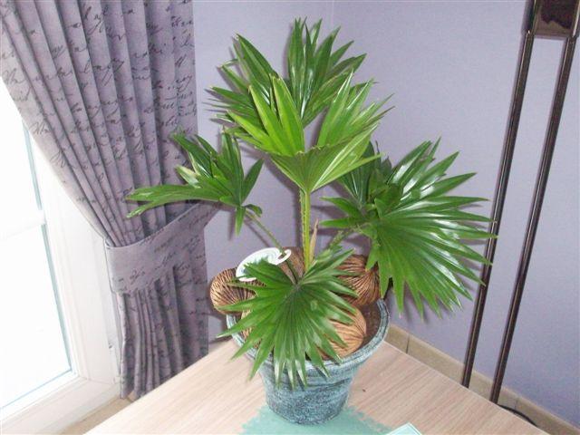 Hmmm, zo'n Livistona Rotundifolia heb ik ook eens gekocht bij de supermarkt, precies zoals op die laatste foto. Die kostte toen iets van 3 euro en was van take-away-trends Er zit echter vanaf het begin af aan totaal geen groei in. Er zit een nieuwe speer in van ongeveer 10cm maar die is nog niet gegroeid of iets. Ik heb hem wel verpot en hij is nog steeds even groen als in het begin. Hij lijkt bijna van plastic zo goed groen nog!
