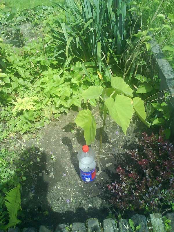 De bladeren van mijn paulownia tomentosa beginnen stilaan hun befaamde grootte te krijgen.