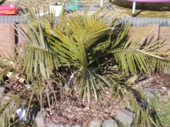 Hierbij een foto van mijn uitgepakte Jubea genietend in de zon.