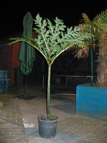 Dracunculus maakt eerst een stengel met bladeren waar de bloem dan bovenaan uitkomt